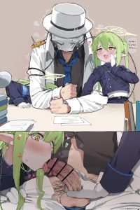 ブルーアーカイブ メスガキノゾミ&ヒカリが机の下でフェラをして搾精する♡