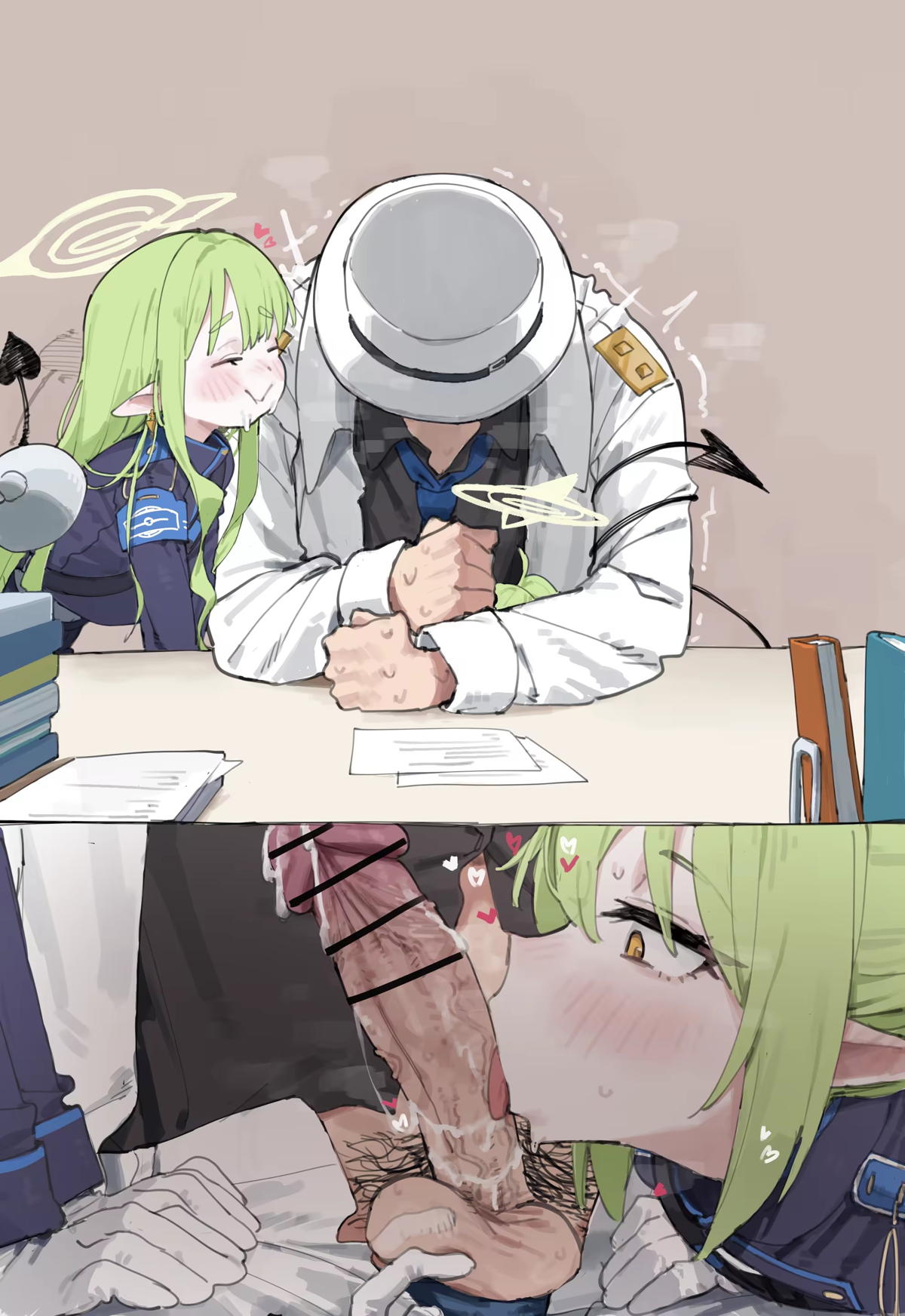 ブルーアーカイブ メスガキノゾミ&ヒカリが机の下でフェラをして搾精する♡